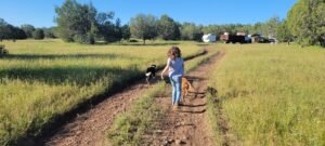 Now, as you explore our family farmstead, you’ll encounter an “old” red barn that we built out of scrap material that serves as home to our beloved cows and sheep. You’ll see an A frame “Goat House” that we bult using the tongues of our manufactured home, and an old school bus we converted into our amazing chicken coop! You’ll even find the camp trailer pictured above – after having been lived in for two years and damaged by leaks and other misfortunes – turned into the best “Bunny Bungalow” you’ll ever find. Our egg-laying chickens might just run between your legs as they run home to provide us with fresh and nutritious eggs every day. The goats add their playful energy to the mix, with their endearing personalities and gentle nature. A donkey or two will come up and expect pets and hugs and Callie the cow will let out a loud, bellowing “hunnnn-greeee” to remind us that it’s feeding time. You’ll be witnessing the harmonious coexistence between humans and animals that is nothing less than a captivating experience that offers a deeper appreciation for the interdependence of farm life and the rewards of freedom.